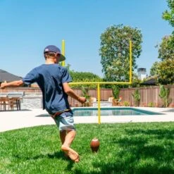 GoSports 8ft Pro Kick Challenge Field Goal Post Set With 2 Footballs And Kicking Tee – 13pc