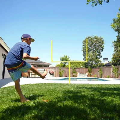 - KICKOFF FOOTBALL FUN: Bring pro level excitement to your next game with this life sized field goal measuring over 7.5ft tall and 6ft wide for fun on an epic scale. Includes 2 Inflatable Footballs and Kicking Tee for the ultimate football showdown