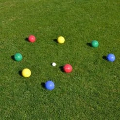 - HIGH GLOSS BALLS: 8 premium balls with 2 Red (1 Circle Cut, 1 Square Cut), 2 Blue (1 Circle Cut, 1 Square Cut), 2 Green (1 Circle Cut, 1 Square Cut), 2 Yellow (1 Circle Cut, 1 Square Cut) and 1 40mm white Pallino