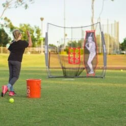 - ATTACH TO NETS OR FENCES: No need to risk player safety in the batter’s box; Simply attach the strike zone & Xtraman onto any 7 ft x 7 ft bow type frame net (NOT INCLUDED) or fence for instant practice sessions