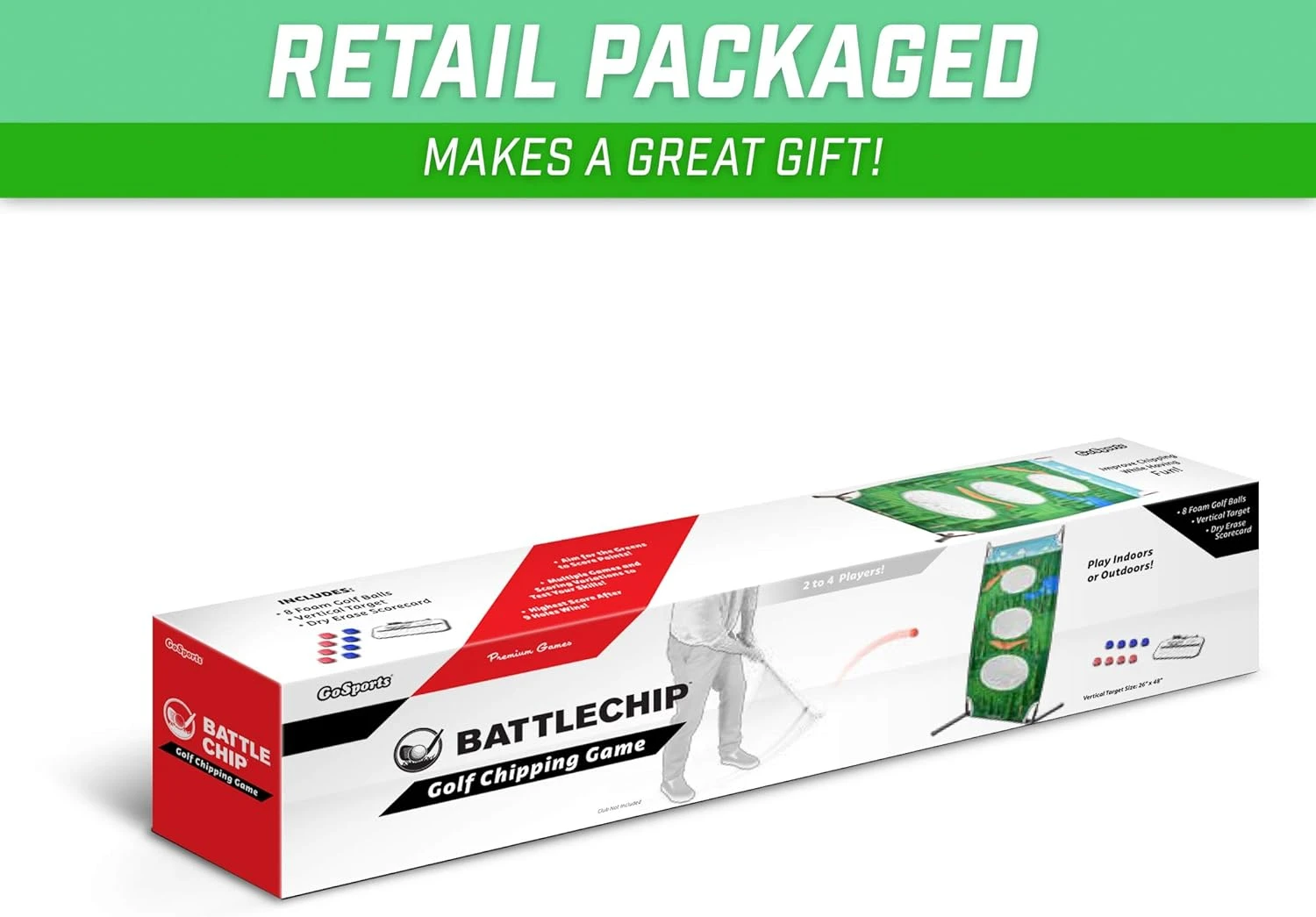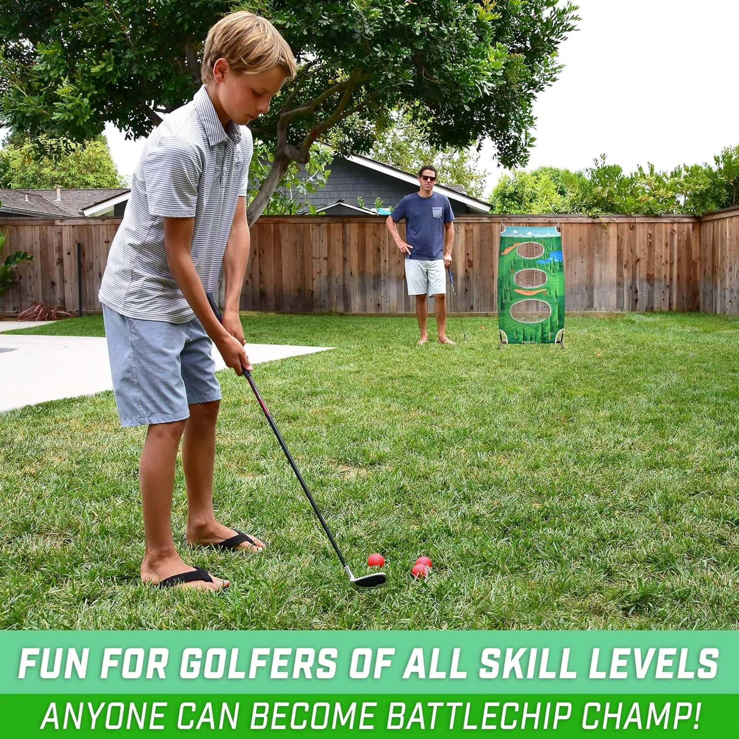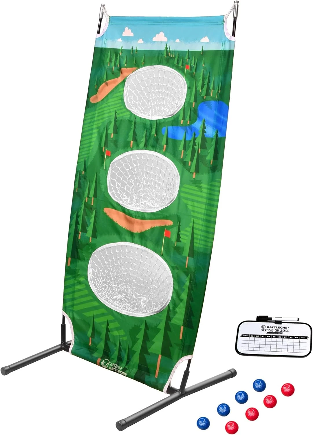 - BATTLECHIP: An exciting new hybrid between golf and cornhole that takes outdoor games to new heights! Easy to learn and fun for all skill levels; Includes 26 in x 48 in vertical target, 8 color foam golf balls, and dry erase scorecard