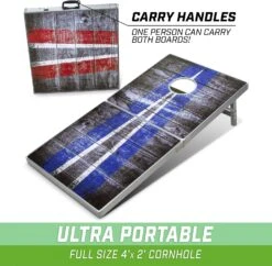 - REGULATION SIZE: Full cornhole set includes 2 regulation size (4 feet x 2 feet) cornhole boards for authentic gameplay, 8 all-weather bean bags, and rules