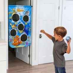 - INSTANT SETUP: Hang the Finding Nemo Bubble Toss target in any doorway! Included Tension Rod is adjustable 24-40 inches wide to fit virtually any doorway in the house for instant setup & takedown, and simply rolls up for easy storage