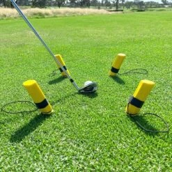 - EASY RETRIEVAL: The pylons will break free on contact from a bad swing for instant feedback; The attached shock cords keep the pylons from flying down-range and make them easy to reel back for your next swing