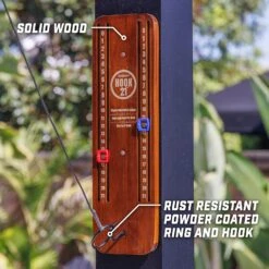 - PREMIUM DESIGN: game board is constructed of solid wood and stained brown to complement your personal home decor; Ring and hook are finished with powder coating to help prevent rust