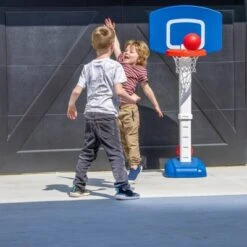 - MODERN KIDS HOOP: Premium basketball hoop for boys and girls ages 1.5 to 5 years; Includes 1 height adjustable basketball hoop and 2 soft pre-inflated balls safe for indoor and outdoor use