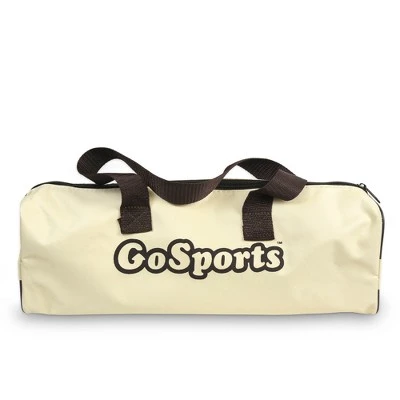 Unplug’ your family and get outside for a fun game of ring toss! The GoSports Ring Toss set is a traditional lawn game that can provide hours of fun for all ages and abilities. In our society of ever-present TVs, Phones and Video Games, this is a great way to get family and friends together (indoors or outdoors) in an engaging game that requires no batteries or screens! The game is made to the highest standards using solid pine wood for the targets and robust rope for the toss rings. Our simplified design means the game can be assembled in seconds. The game has 5 scoring towers with varying point scores, so it is great for developing hand-eye coordination as well as basic math skills. Games can be played with anywhere between 1 and 4 players. The set includes a zip up carrying case to conveniently hold all the game’s pieces. The game includes 1 target, 4 throwing rings, a carrying case and rules. Get outside today and thank you for supporting GoSports!