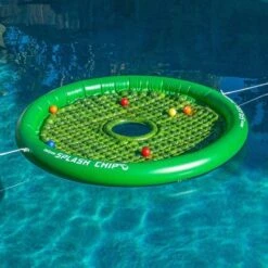 Splash Chip is an exciting new golf game that introduces a fun new chipping challenge in the pool! 2-4 players can compete and will aim their chips to hit or land on the chipping target to rack up the most points and win, just watch out for the surrounding water! Splash Chip can also be used by individuals for practice. Full rules are included and players are also welcome to make up their own fun ways to play. Now practice chipping skills while having fun with Splash Chip!