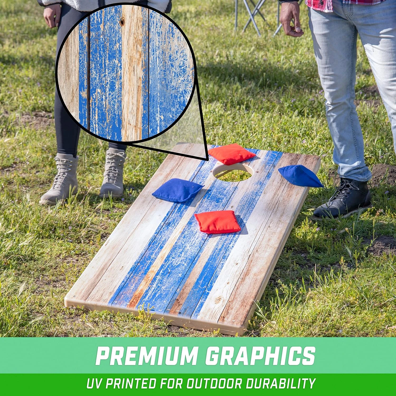 - PREMIUM ALL-WEATHER CORNHOLE BOARDS: UV printed with realistic wood graphics, our Tough Toss cornhole boards can withstand humidity and rain showers, unlike traditional wood sets; Boards are made from robust weatherproof materials so you can play all year round