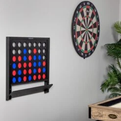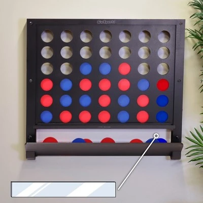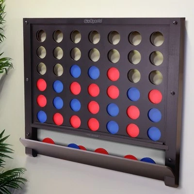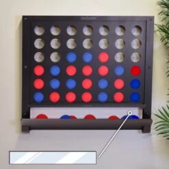- WALL MOUNTED FOUR IN A ROW: Giant game board measures 2.5 ft x 2.8 ft and can be easily mounted indoors into wall studs, drywall, concrete, brick and more (hardware included); Great for game rooms, offices, garages or bars