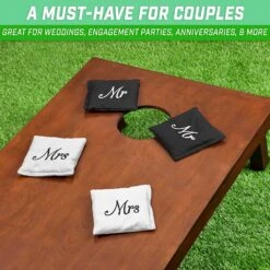 GoSports Wedding Theme Cornhole Bag Set – Includes 4 Black Mr Bags And 4 White Mrs Bags